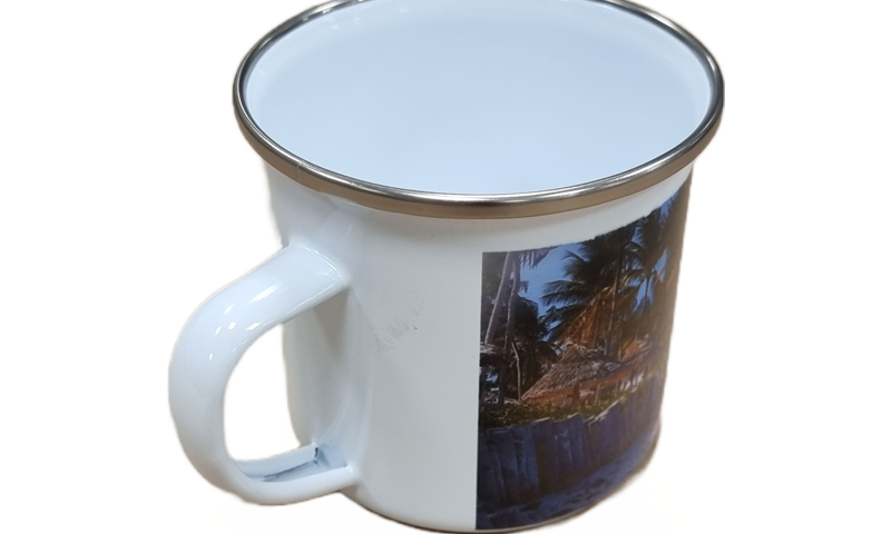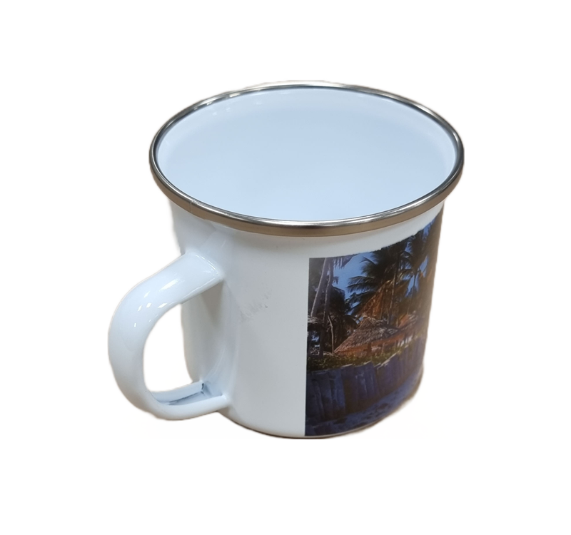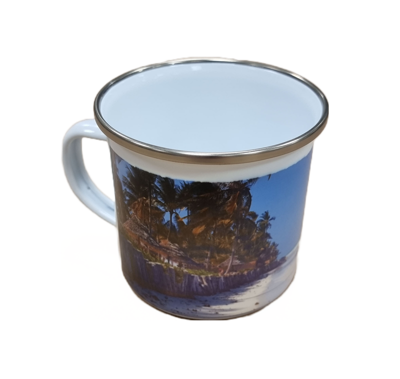 Emaljmuggen passar överallt – i husvagnen eller på picknicken