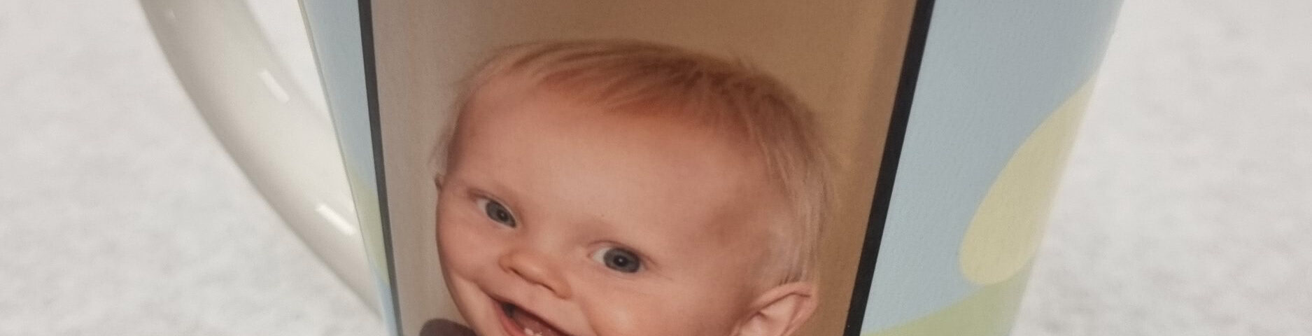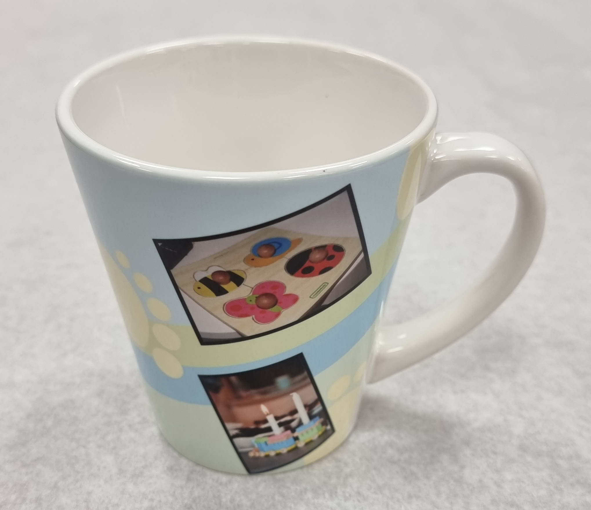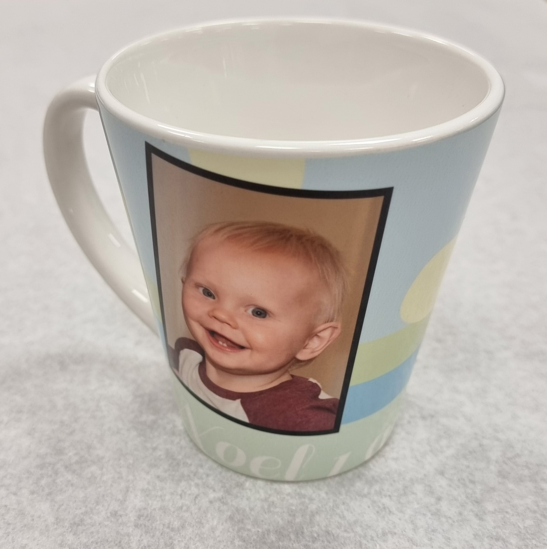 Kaffe latte-mugg av högkvalitativ keramik och med ett stort panoramatryck.